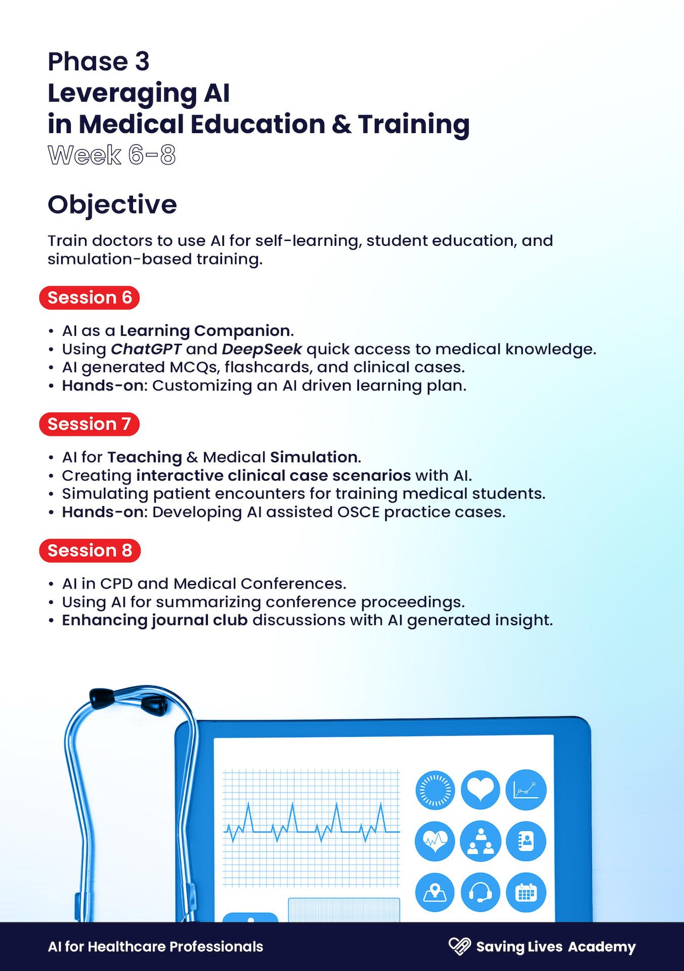 As AI continues to transform healthcare, it is increasingly important for professionals to grasp not only what AI is, but also how to evaluate its impact, limitations, and opportunities in real-world clinical environments. Led by Dr. Walid Alhabashy, an ICU Consultant and digital health educator, this course bridges the gap between frontline healthcare and cutting-edge technology.