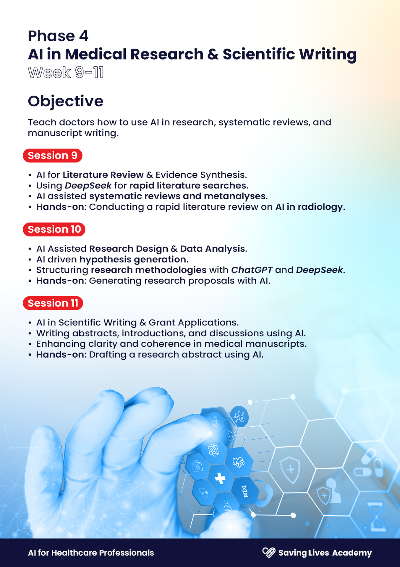 Whether you’re a beginner or already curious about AI in medicine, this course offers practical, clinically relevant knowledge that you can immediately apply. No prior technical background required.