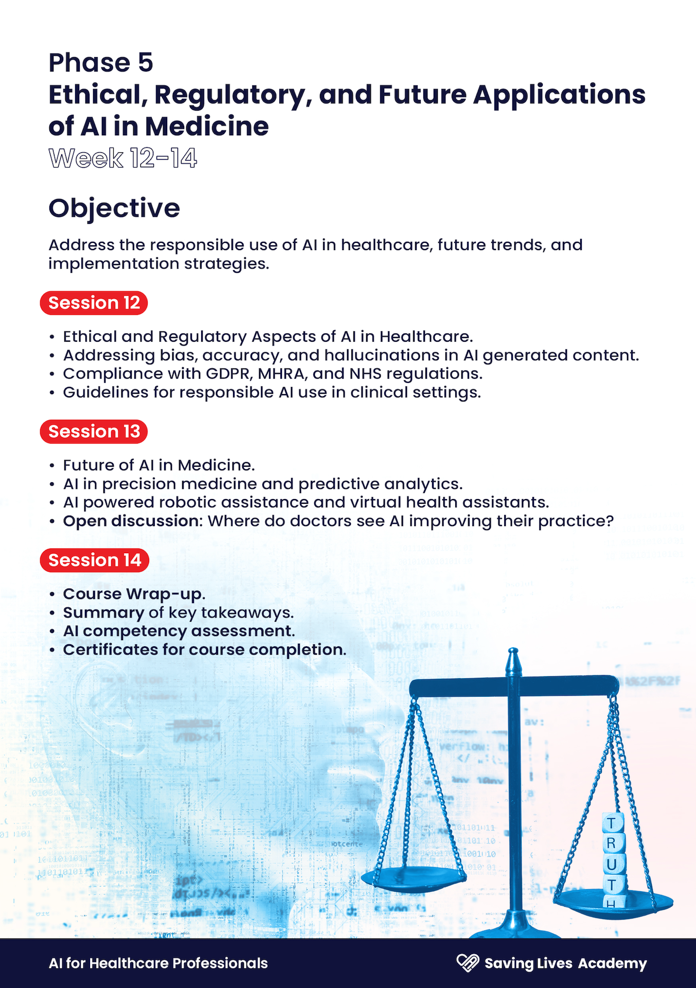 Stay ahead of the curve in modern medicine. This dynamic and accessible AI for Healthcare Professionals course is specifically designed for clinicians, healthcare managers, and medical educators who want to understand and apply artificial intelligence in clinical practice.